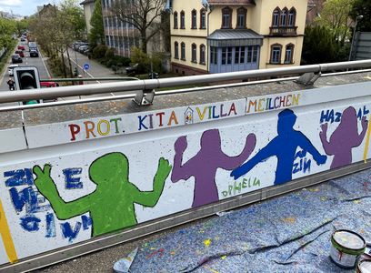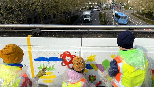 Kinder und Jugendliche sind im April 2026 kreativ und verschönern die Fußgängerbrücke über der Ludwigstraße mit Pinsel und Farbeimer. Mit dem Projekt will die Stadtbildpflege Kaiserslautern die Brücke mit legalen Graffiti farbenfroh gestalten lassen und das Aufsprühen von illegalen Graffiti verhindern. Am Ende der Aktion werden die Bilder mit einer Beschichtung versehen, um sie vor neuen Verschmutzungen und Beschädigungen zu schützen.