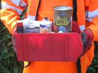 Geben Sie die schadstoffhaltigen Abfälle den Mitarbeitern am Umweltmobil. Schadstoffe dürfen an den Umweltmobil-Haltestellen nicht einfach abgestellt werden. Das gefährdet Mensch und Umwelt und wird als illegale Abfallablagerung geahndet.